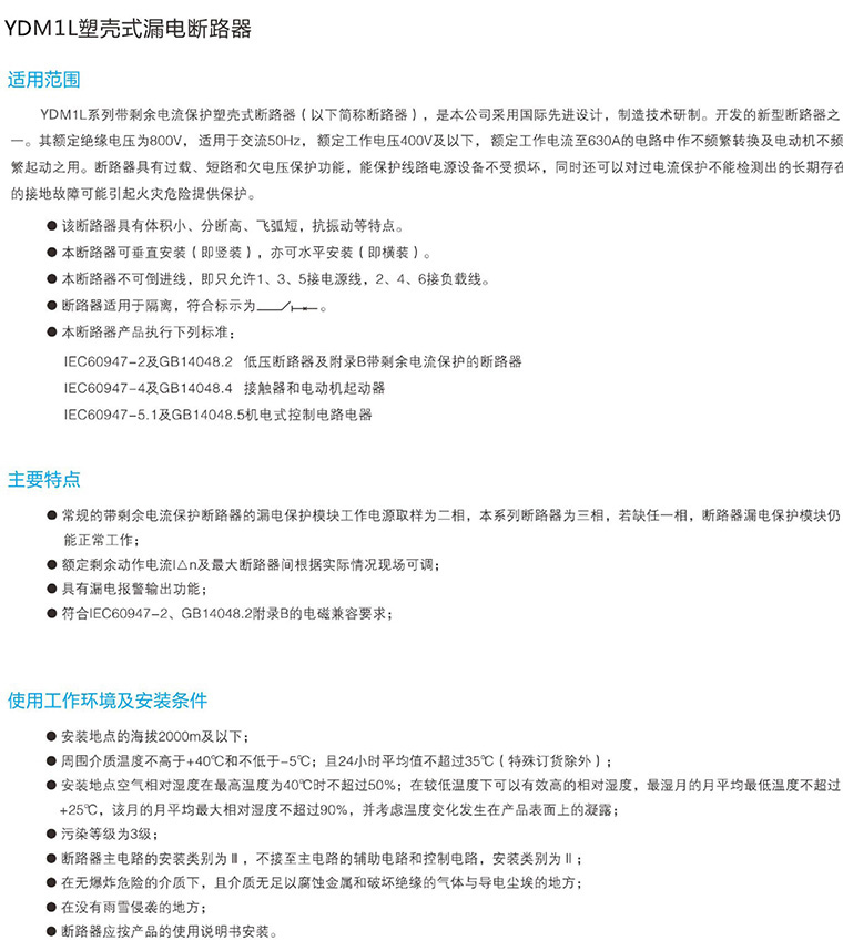 YDM1L塑壳式漏电断路器