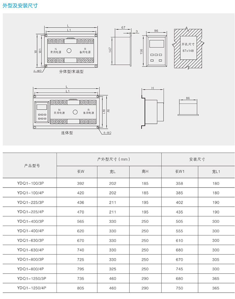 YDQ1系列双电源自动转换开关(PC 级)