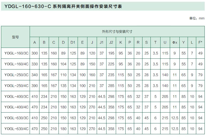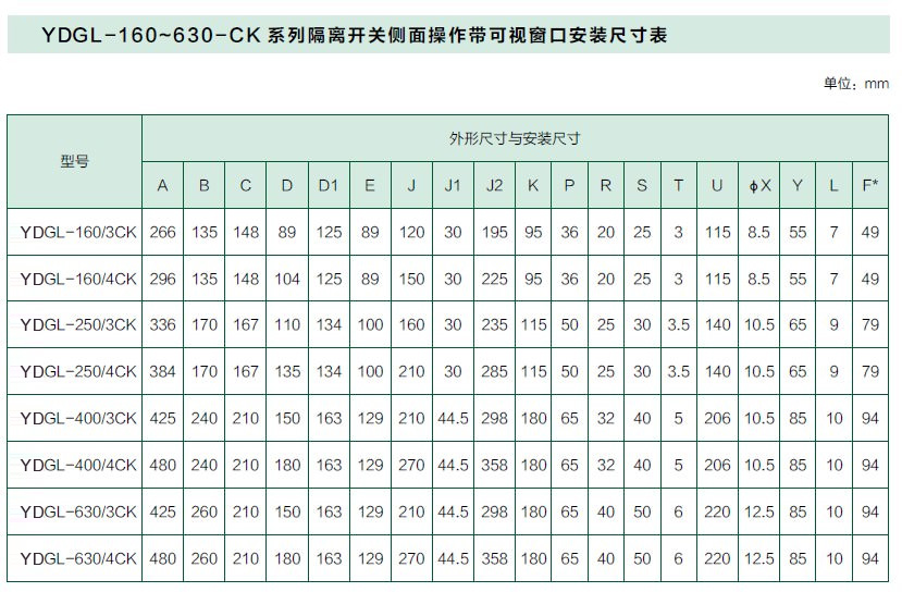 YDGL-C、YDGL-CK 系列侧面操作隔离开关